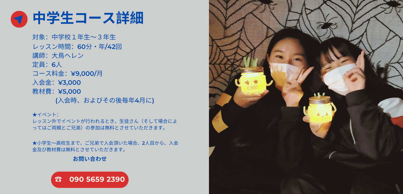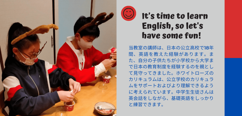 中学生コース jhs-shs-learning-english-at-white-roseDownload Share this: Click to share on Facebook (Opens in new window) Facebook Click to share on X (Opens in new window) X Click to email a link to a friend (Opens in new window) Email Click to print (Opens in new window) Print Like Loading...