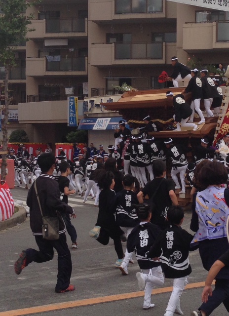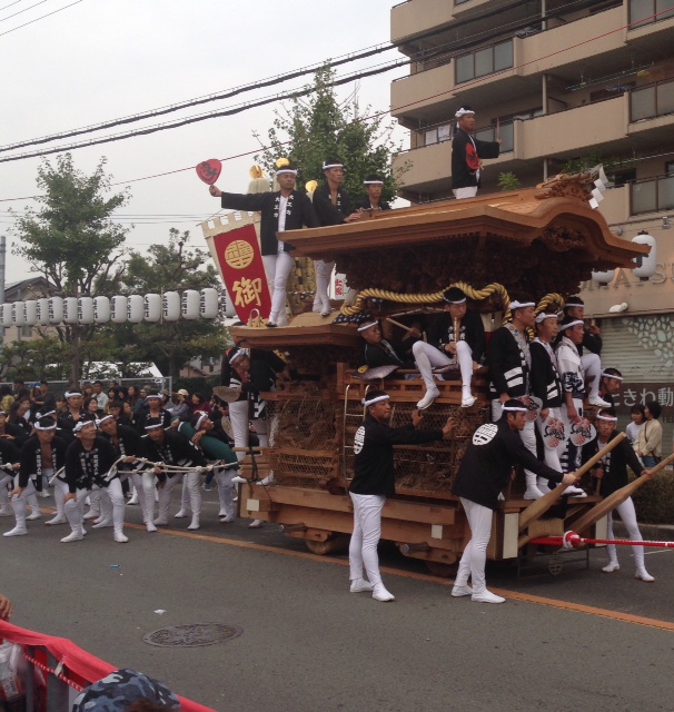 Kishiwada hosts two Danjiri festivals, the first of which, held in September, is the more famous. In October, however, the towns towards the mountainside hold their own festivals, with men, teenage boys and girls, and even young children pulling the carved wooden danjiri cart around the neighbourhood. It’s hard not to feel a thrill as the parade of carts passes by my house, leaving behind the echoes of the drums, pipes and yells of the team as they encourage each other to pull harder as they speed around the corner.